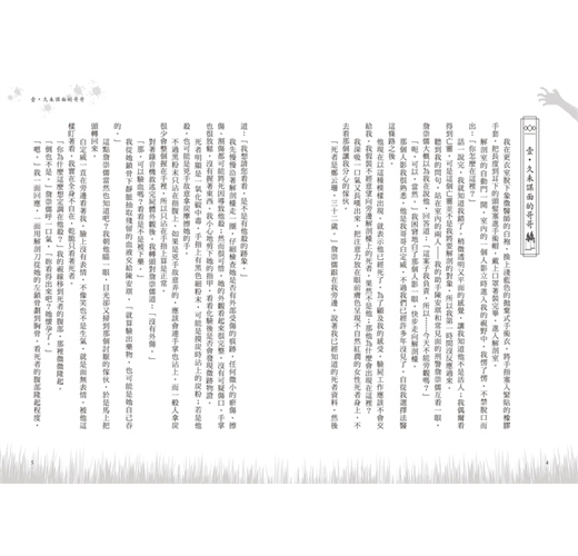 話一說完,我就知道我錯了。稍微透明又平面的感覺,讓我知道他不是活人。我偶爾看得到亡靈,可是這個亡靈並不是我將要解剖的對象,所以我第一時間沒反應過來。
