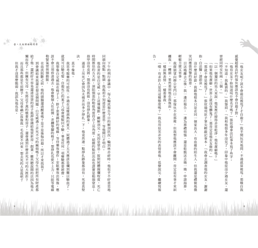 本書以各種中短篇連綴而成,有別於以往驚悚懸疑類型的小說,