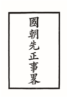 本書為清帝國建國之初至咸豐時期朝野重要人物共1108人傳略,六十卷五百篇十大冊。同治三年開始撰寫,分〈名臣〉〈名儒〉〈經學〉〈文苑〉〈遺逸〉〈循良〉〈孝義〉七門;光緒十六年鄒存淦校對抄本,另朱孔彰著有《國朝先正事略續編》四卷。