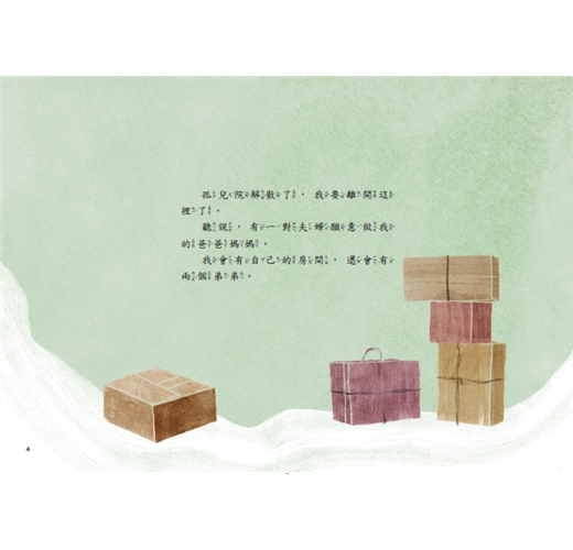 榮獲好書大家讀2022年度最佳少年兒童讀物獎,橫幅精裝繪本,內容藉由小女孩的自述配上畫風溫暖的圖案完整帶出因為弧兒院解散小女孩被新爸媽收養在新家庭的生活心情。呈現出圖文並茂精彩繪本。