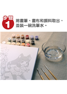 1. 將畫筆、畫布和顏料取出,並裝一碗洗筆水。