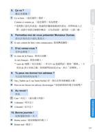 依場合收錄日常短句,如電話交流、餐廳用餐、購物、飯店住宿等各場合下會用到的短句內容。各個場合共有10至11句不等的短句,每個短句除了會配上中文翻譯之外,下方還會附上解說文字,或是同義的句子或與其相關的回答句。學會這些短句就能達到法語基本的溝通,讓自己說出來的法語更加自然。