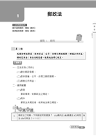 這本《郵政法規大意及交通安全常識》適用於中華郵政(郵局)招考專業職(二)外勤郵遞業務、運輸業務類科。