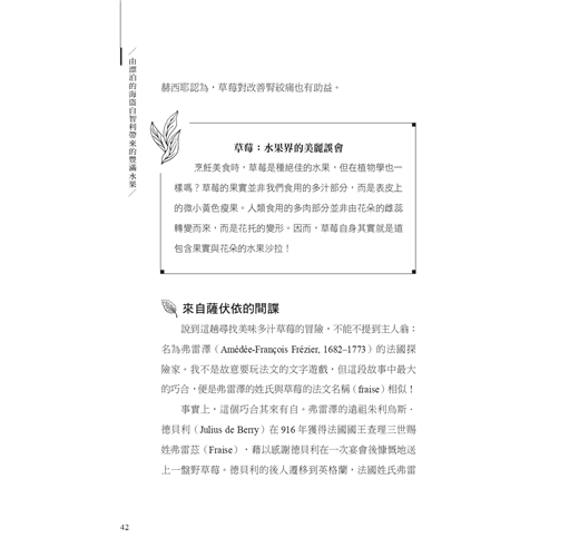 人人盡知達爾文和庫克船長,而對自然科學稍有研究的人都知道林奈的大名。但有誰記得弗雷諾(François Fresneau,1703-1770)、特維(André Thévet,1516-1592)或薩赫贊(Michel Sarrazin,1659-1734)?我也希望能透過這本書向他們致敬。