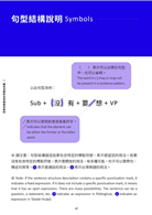 句型/結構說明是將同類的句子或詞彙拆解開來分析,而得到其組成的關鍵成份。實際使用的時候可以加上副詞、時間詞等等。