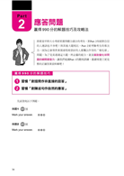 面對多益的第一步,就是確認各單元中「贏得990分的解題技巧及攻略法」。但是掌握技巧就像學騎腳踏車,就算人家跟你講一百遍還是很抽象,所以本書每單元都從「例題」開始,讓自己先試個兩題,寫完「例題」後,再閱讀「HUMMER式密技」,HUMMER老師馬上以該例題示範最有效的解題步驟,也就是用實際的例子帶你看該看的地方!例如:考試時,應如何分配時間先預覽紙上試題,將看似只能被動挨打的聽力測驗,巧妙化為主動攻擊!
