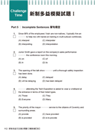 本書除了幫助考生整理出Part 5必考文法重點之外,也特別針對Part 6的〈插入句〉題型提供了兩種解題技巧。插入句的解題技巧,就是選擇符合前後文語意邏輯的語句,如果考生能掌握住這個閱讀技巧,不只能完美破解Part 6,更能提昇Part 7文章的閱讀速度,精準抓到文章重點。
