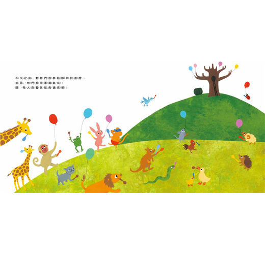 這個溫暖人心的故事,傳達了分享的美好,以及合作互助的成就感,充滿溫馨愉悅的場景和氣氛,讓人一邊閱讀,一邊心頭暖暖的,迫不及待也想登上小山丘,一起參與這場充滿驚喜的派對!