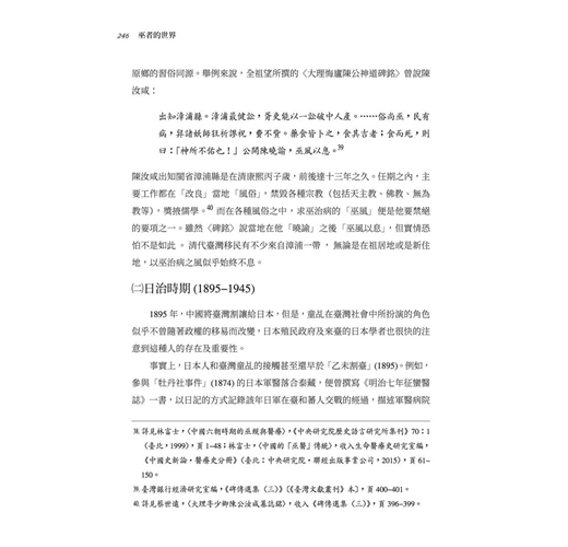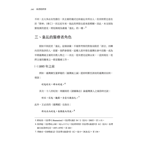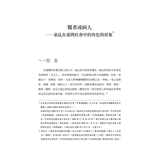 [5] 詳見林富士,〈醫者或病人──童乩在台灣社會中的角色與形象〉,頁511-568;林富士,〈清代臺灣的巫覡與巫俗:以《臺灣文獻叢刊》為主要材料的初步探討〉,《新史學》16:3(臺北,2005),頁23-99。