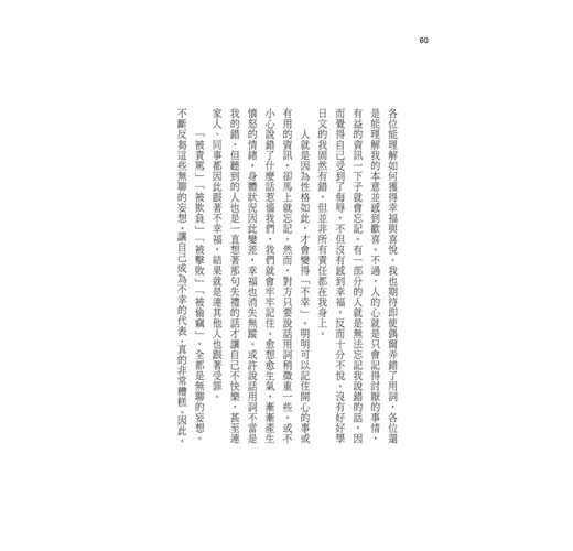 當然,我們還是要好好注意健康,避免生病。能夠保持健康就是一件幸福的事。不過,就算生了病,幸福也不會就此消失。以正確的心態面對現實,能讓人免於沮喪,正向積極地生活。