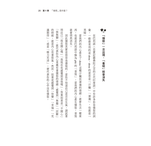 說到不如意事十之八九,其實就連我們的心也常常無法如願受自己控制。即使努力「不發怒」,還是會忍不住生氣。在克制脾氣與發怒的循環中,有時我們甚至會因為厭倦而開始找尋捷徑,想要知道「如何能立刻成為不生氣的人」。不過,這種貪圖方便的想法,只會成為新的怒氣來源。