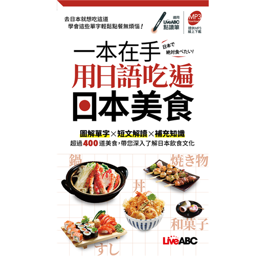 充滿魅力的日本文化,每年都吸引大量的台灣旅客前往日本旅遊。其中,日本獨特的飲食文化也扮演了不可或缺的角色。走訪台灣街頭也可以發現不少主打拉麵、烏龍麵、壽司等餐飲店,由此可見,台灣的飲食習慣也深深受到日本的影響。因此,敝編輯部特別規劃了這本以介紹日本美食為主題的書籍,讓喜愛日本美食的讀者能夠從更多元的角度來認識日本文化,並且以輕鬆、有趣的方式學習日語。
