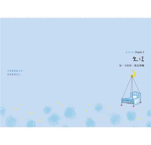 變成大人的路上,難免挫折、難免有眼淚,希望你能夠溫柔對待自己。肆一親繪了柔柔軟軟的月亮床,期許你活回自己的時區,為自己而燦爛,不再活在別人的時差裡。