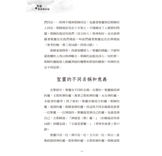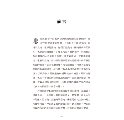 耶穌在兩千年前和門徒講到保惠師聖靈要來時,就說父所要差來的聖靈,「乃世人不能接受的,因為不見祂,也不認識祂,你們卻認識祂,因祂常與你們同在,也要在你們裡面。」如主所說,直到如今,仍然有許多信耶穌的人不能接受聖靈,其主要原因,就是不認識祂,也看不見祂。另一原因顯然是不知道聖經中所有關於聖靈的真理,是何等地重要,何等地寶貴。再其次是接受聖靈的教會和信徒,缺少初代教會那樣活潑有力正面的見證,以致許多人對聖靈有所誤解或存有成見。然而主卻說,也有不少祂的門徒是認識聖靈的,因為他們領受了聖靈,就親身經...