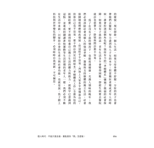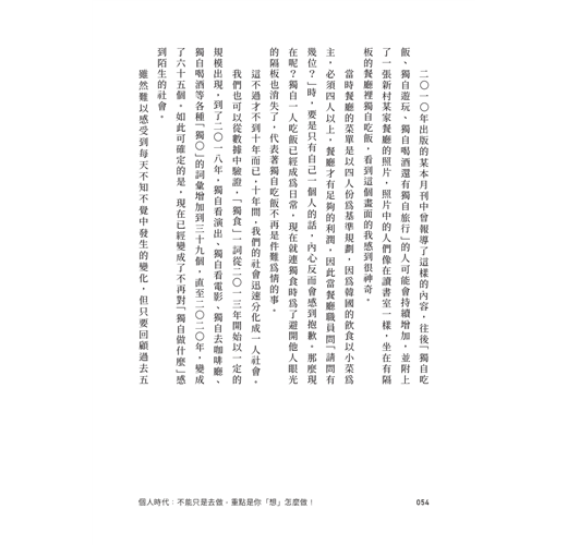 不婚、獨居、婚內孤獨、組織內個人崛起的「個人時代」已經來臨,要如何因應新型態的生活與工作觀,創造個人品牌與成功行銷,我們需要兼具學術與實務的Know-how,所以一定要閱讀這本「未來個人學」的好書!──惠文高中圖書館主任、作家.蔡淇華 疫情扯開看似太平的遮羞布,將原本存在的問題再次放大;越是科技便利的生活,就越多人會被落下;社會運行的方式變化急遽,加深著差距與彼此理解的鴻溝;生活在當下的人們害怕緊繃、嚴肅的,梗、meme、脫口秀的流行在在彰顯調侃對這一世代的重要性。為《紐約時報》撰文的歷史學教授Gil Troy曾說過一句觀點:「我們今日所面臨的挑戰,是在每個個體的日常生活中發現意義。」換言之,能夠用小敘事幫助大眾發現日常中新的意義來源,將會是每個品牌從業者的必修課。如果無法消除焦慮,那就專注當下、打開好奇、抓住時代性的機會,亦是本書對於應對心態的重要提醒,時刻謹記。──加個零社群觀察.張嘉玲 曾經有段時間不停強調習慣,提倡身體最重要,身體如果擁有記憶的話,可以自然而然達成想做的事,談及相關議題的書籍也很多。不過這本書又再次轉了個彎,透過大數據,告訴我們不要跟隨他人,先思考人生的各種面向,再設定方向。──政治學家.蔡孝定 這本書指出新自由主義之下將弱肉強食和適者生存合理化的問題,我也認為是不正確的,因為這是動物世界才會發生的事情,我們是建立並發展文明社會的人類。──獨立媒體工作者.李錦姬 這本書講述了數據如何在無數雜音中搶先一步捕捉變化的訊號,同時也提供停下來思考的絕佳機會。──Aladin韓國網路書店採購.洪聖源