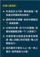 天啊!這也太太太刺激了!我一直提心吊膽……故事超棒,結局超神!!!——Goodreads書評,五顆星推薦