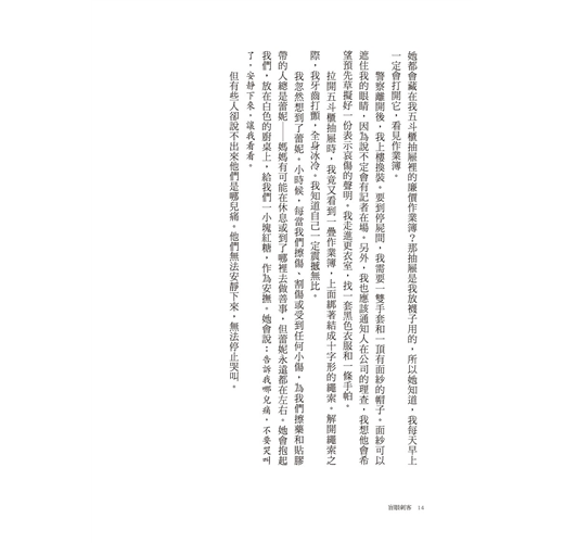 拉開五斗櫃抽屜時,我竟又看到一疊作業簿,上面綁著結成十字形的繩索。解開繩索之際,我牙齒打顫,全身冰冷。我知道自己一定震撼無比。