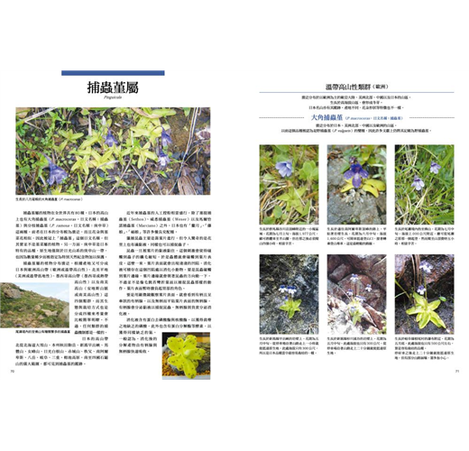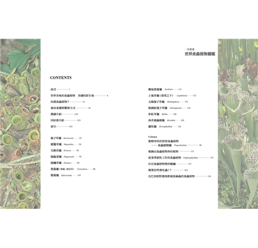 不僅分屬以及氣候帶介紹食蟲植物的特色與生長方式,