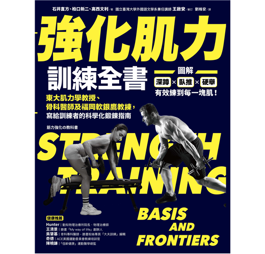 簡單的事情反覆做,反覆的事情用心做。真正的肌力訓練並沒有什麼神奇的地方,乍看之下會令人感到簡單和無趣,卻不知其中藏著「安全第一」的前提。所以您只要用心地做,就能產生相當神奇的效果,因此我推薦您詳閱《強化肌力訓練全書》,書中透過有趣的問答方式,讓您更能深入地瞭解科學化訓練的精髓。──王清景,臉書「My way of life」創辦人