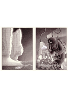 ‧僅以黑白色調表現。大開本的頁面中,讀者可以藉由每一幅場景裡的環境、建築物,以及各種生物的細節之處,感受到作者精雕細琢的工筆刻畫技藝。