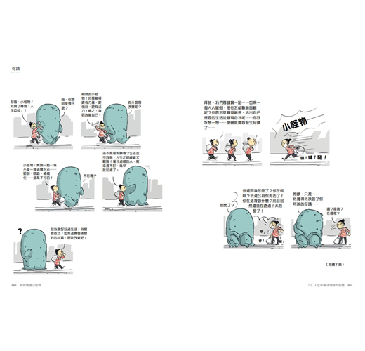 作者將自身面對的焦慮、痛苦,以自我對話並逐漸自癒的過程,
