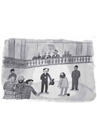 馬葛兒老太太嚇得連話都說不上來,渾身一個勁的打哆嗦。米黛斯也壯著膽子叉起腰來,但看到哥哥沉著的神情,立刻鬆了口氣,坐回原位。