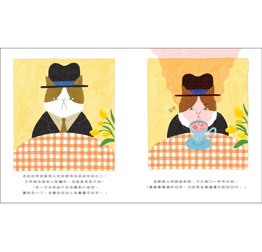 書裡的貓咪喝茶的樣子實在太可愛了,雖然貓咪不說話,仔細看他們喝每一種茶的貓鬍鬚都會有不同的變化,一定是在這些不同風味的茶裡獲得了不同的感動吧!