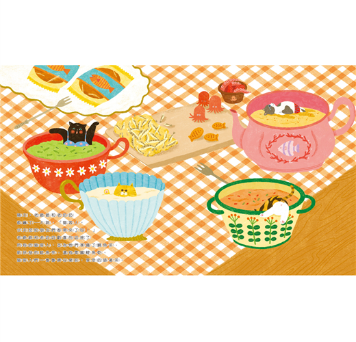 我非常認真的在研究《貓咪茶館》裡老闆爺爺的配方,那些神奇像是有魔法一樣的煮茶道具和藏在圖畫裡各式各樣的隱藏材料,貓咪和像我這樣的愛貓人看了就知道一定超級美味的!我和宅宅徽徽都好想嚐一口呀!