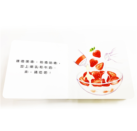 樸直寫實又溫暖的細緻插圖,搭配厚實圓潤的書角,從眼到手都呵護孩子。由每種水果外觀的細緻形容,到如何料理水果——切開、削皮、去籽、切片、擺盤……引導孩子知道水果從植物變成食物的過程,透過視、聽、嗅、味、觸五感體驗,讓水果們用最真實的樣貌、最耐用的厚實度,攜著孩子的小手打開食育世界的大門。