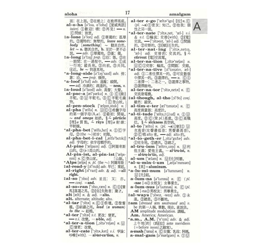 3.漢英部分:中文單字約7,300餘,詞語約30,000餘,內容豐富,新詞最多,採用部首筆畫、國語注音、漢語拼音三種索引,所有詞條並加注國語注音。