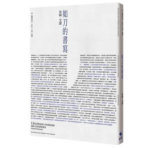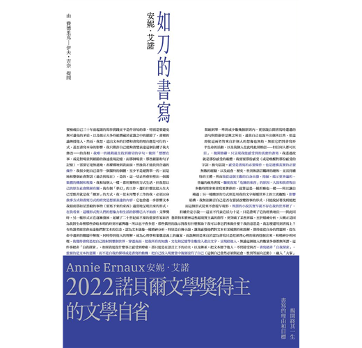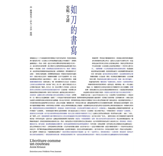 在這本書中,讀者將一窺這位偉大作家的見解與心靈,無論是實際書寫過程中各種環節的拿捏,又或者是書寫的動機,以及其背後的想法、觀念與對世界的理解。這是一場安妮・艾諾的文學自省,也是一堂難能可貴的寫作大師課。