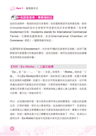 在這本書裡所列的「對話」情境,就是你會跟外國友人談到的外貿業務內容,書裡列的「說三道四,換句話試試」,就是要讓你看看跟外國友人如何用不同的話談同類型的事,書裡的「關鍵字急救站」,要帶你看看這些基本關鍵字詞的內涵,很多時候有的英文字我們以為看過了、看熟了,就是懂了,但其實不然,因為我們還沒知其所以然,而從這些關鍵字詞一路探究下去,讓你懂得的也不僅僅只是英文,更有相佐的貿易專業知識呢!此外,書裡還有一個重頭戲小單元,那就是「術語直達車,專業補給站」,光祭上「術語」與「專業」這兩個詞兒就知道這個小單元的份量了吧?!不過,請別擔心,我們可以「深入」談,但也懂著如何「淺出」,絕對讓你順順地讀下去,知識就這麼自然地吸收進去了呢!書裡每一節的最後一個小單元,就是要讓你動手練習一下的「Show Time!換你上場!」當我們看得順,都順到邊看邊點頭時,其實還真的只是看順眼,了然於心,還沒到真正入了心呢!所以,到了這個練習的小單元,就請真的拿支筆,動手寫寫吧!