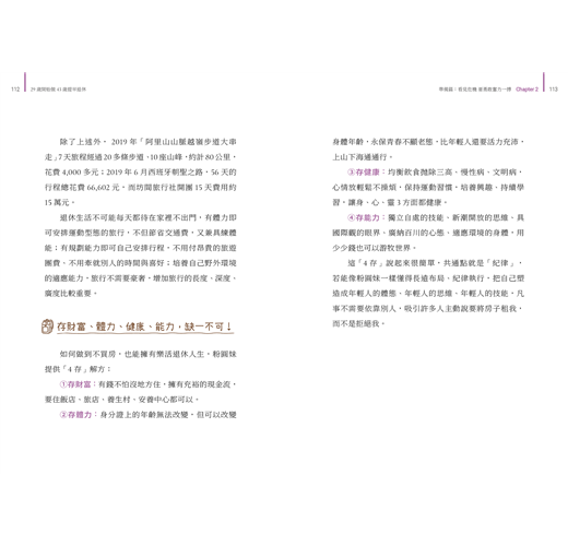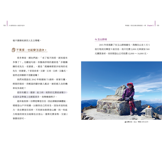 這一路上的堅持辛苦,達成目標的步驟方法,以及退休後的冒險故事,她都毫無保留的在書上跟大家分享。