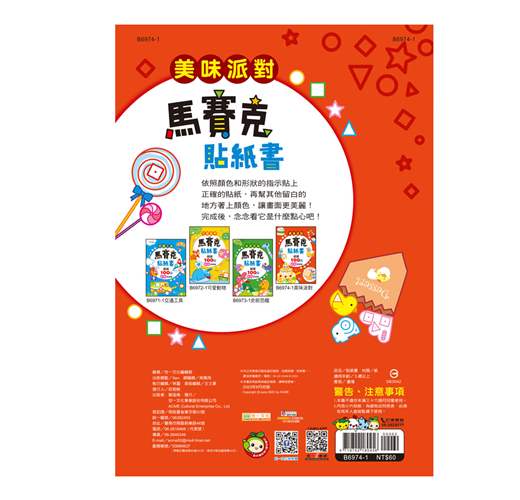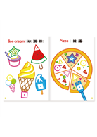 小手貼貼系列共有交通工具、動物、恐龍以及美味派對四種主題,依照圖案指示把正確形狀、顏色的貼紙貼上去,沒有上色的部份也可以自己上色塗鴉,讓圖案更完整!每本都有超過100張貼紙,還能學習中英文單詞喔!