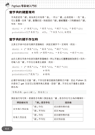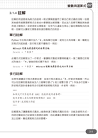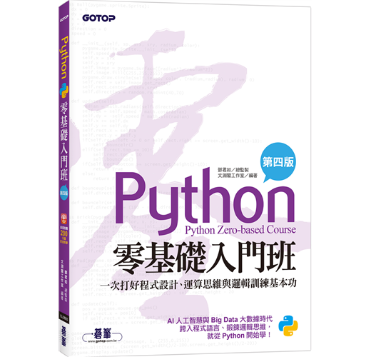 Python的應用範圍相當廣泛,無論是資訊蒐集、大數據分析、機器學習、資料科學、網站建置,甚至是遊戲開發等,都能看到它的身影。本書以零基礎學習者的視角進行規劃,從最基本的認識程式語言與環境架設切入,再進到程式設計流程的完整學習,輔以觀念圖解、表格歸納,以及流程圖,深入淺出一窺Python程式語言與設計的奧妙!