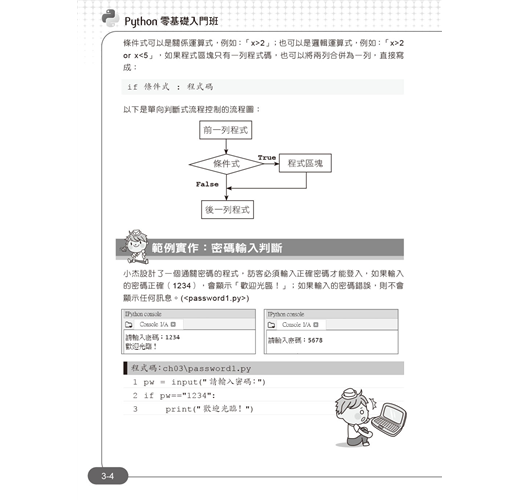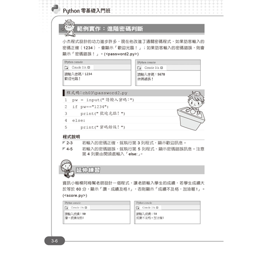 ‧本章範例包括:密碼比對判斷\輸入成績評等\電影分級判斷\百貨公司折扣戰\數字比大小...等。
