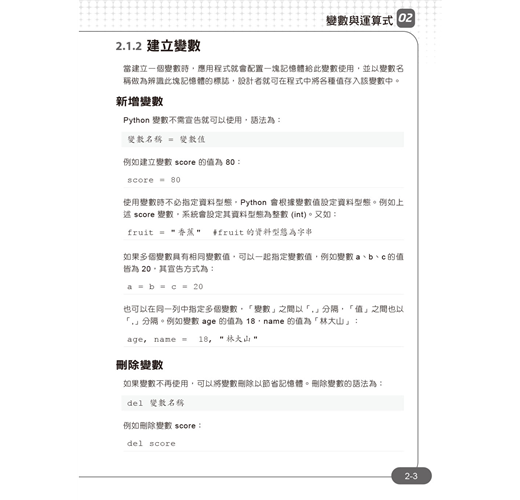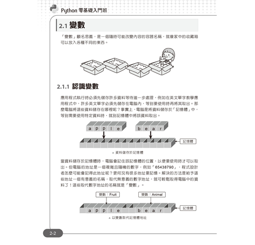 變數建立時,應用程式就會配置一塊記憶體,並以變數名稱做為辨識此塊記憶體的標誌,設計者就可在程式中將各種資料存入使用。運算式包含了運算元與運算子,可以...