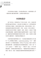 書中除了介紹特殊聚會講道的歷史與神學並給予定義性的資訊外,也按部就班提供構思講章的建議與練習,讓講道者能夠按圖索驥,在師父手把手的提點與叮嚀下,完成一篇篇能與聽眾連結、內容聚焦且又獨特的講章。