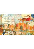 到了故事尾聲,連本是敘述功能的文字也跟著伊索飛舞,成為視覺饗宴的一大亮點。本書打破「看圖說故事」的框架,不只以夢幻圖像重新詮釋故事,更創造出故事之外的圖像趣味。