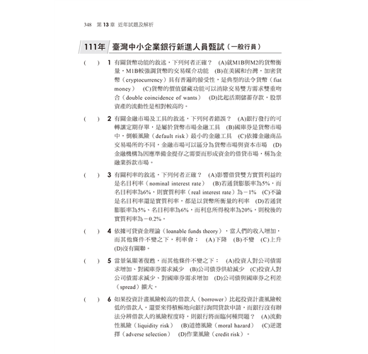「貨幣銀行學」不僅是農會的重要考科之一,同時也是銀行常見的考試科目,有鑑於銀行招考頻率多,各家銀行考題多元,因此本書也特別收錄各家銀行的「貨幣銀行學」考題,並將其依主題分類放置於各章節後的隨堂練習,並逐題加以詳盡解析,難懂之處更加上圖解,最適合釐清觀念,打通你的學習思路!