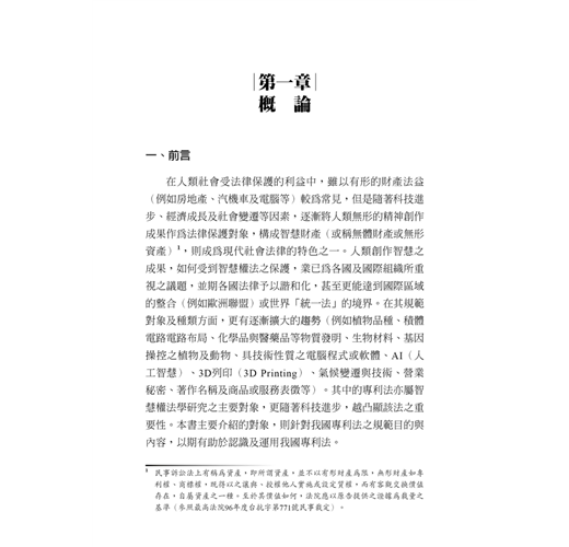 專利法所涉及問題,可包含科技、管理與法律等層面,本書主要係從法律面向探討專利法律問題,使讀者認識專利法之基本法律概念與基本原理,以利專利法理論與實務問題之解決。