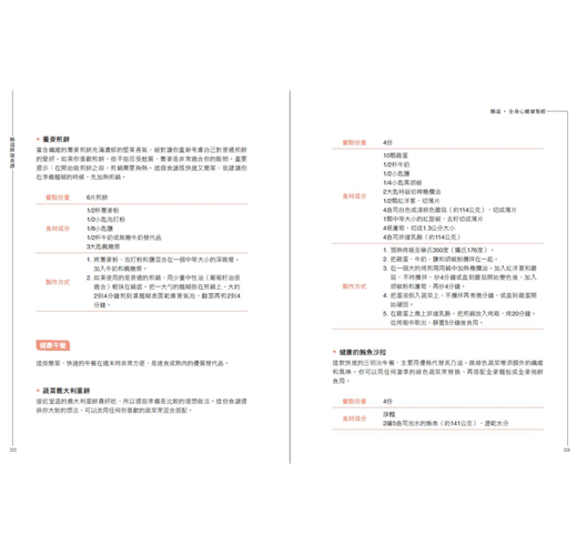 ‧腸道健康計畫:按照食譜製作早餐、沙拉、配菜、主食、甜點零食