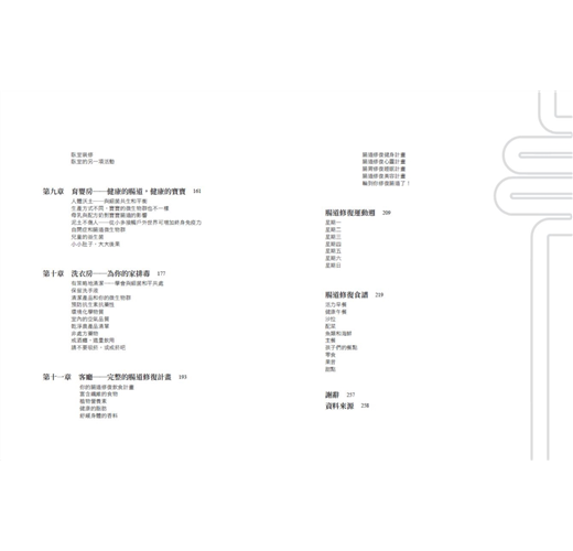 ‧補充品選購+修護食譜+運動指南,連兒童正餐零食都有:身為2寶媽,作者深知規律地運動和烹煮健康、小孩也愛的餐點有多難,所以書中除了提供基礎且多種場合都可以做的運動,還以快速上菜為基礎來設計菜單,全都是作者親身實踐且有效的最佳範本。