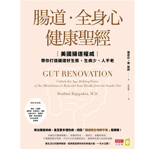 《腸道‧全身心健康聖經》作者羅希尼‧雷醫師是美國頂尖腸胃科醫師,慧眼獨具地指出:腸道菌失調,和新冠肺炎、肥胖症、心血管疾病、風濕免疫疾病……常緊密相關,特別是存在「腸-皮膚軸」、「腸-腦軸」的機轉,皮膚發炎老化、大腦焦慮憂鬱的潛藏病因,正是腸道菌失調。最新的腸菌基因圖譜檢測技術,已能夠檢測:到底你的腸道裡住了哪些好壞菌?比例如何?罹患相關疾病的風險又是怎樣?進一步,透過飲食、營養、正念、好眠、運動、排毒,重新打造如亞馬遜森林般的腸道菌生態系,才能扭轉疾病的命運。