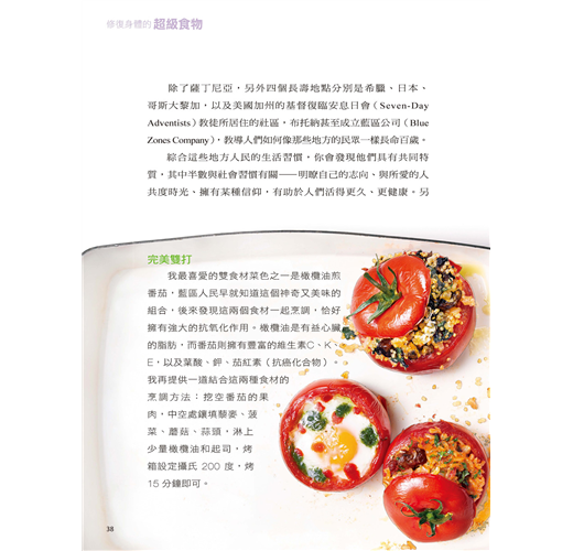 食物是良藥:義大利文「藥房」(英文為pharmacy)這個字的拼法是farmacia(按:farm即農耕、農場之意),含有許多真義。世界上最好的療方,有一些正是長在農田裡,超市裡都買得到,如果你懂得吃對的食物、會料理,它們隨時都可以在你的身體裡產生作用。正確的食物甚至可以取代每天必吞的藥丸。