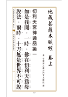 《地藏菩薩本願經》全文共分十三品,是佛在忉利天為母親所說的殊勝經典,因此又被尊為「佛門孝經」。內容包括佛陀讚揚地藏菩薩大孝尊親、大願無私的精神,與修持《地藏經》的二十八種功德利益;更諄諄告誡世人孝為首善,及諸惡莫作、眾善奉行的道理。