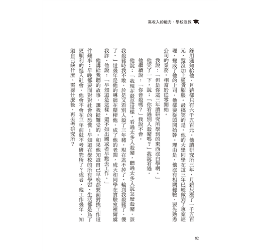 學歷不等於能力,卻是一張現實的職場入門票;沒有好學歷,就必須學會說好自己故事的能力。《高收入的能力,學校沒教》充滿真誠且句句精準,作者從過來人的角度分享職場必須知道的觀念與常識,非常推薦給社會新鮮人閱讀,並內化應用。