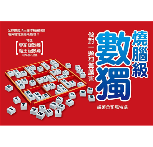 由九組3×3的格子構成,依規則填入數字1到9的數獨遊戲,1979年由美國人Howard Garns所發明,雖然簡單卻讓人百玩不膩。人們每天在紙上、電腦、手機上破解數獨題目,玩得樂此不疲,隨時隨地給腦細胞做體操。