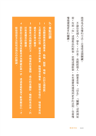 好評推薦 前言 生活是一個大型遊樂場 第一部 面對現實世界,才能成為關鍵 祕密一 信念:成為內心強大的人,養成正向循環模式 1.每個人都是在過程中成長蛻變的 2.打破負向循環的焦慮,關鍵是「面對現況」 祕密二 關鍵:每個人都能找到生命中的關鍵,只是缺少發現的方法 1.關鍵就是做好一次,可以用一輩子 2.重複、高效率地做,就會「成為關鍵」 3.把自己當成一個產品來打造、設計 第二部 面對個人成長,你要相信「成為關鍵的那個自己」 法則一 盤點:多數人都沒發覺自己就是那位強者 1.定期盤點自己過往的成果 2.看起來很厲害沒有用,只會累死自己 3.盤點的關鍵在於如實地面對與記錄 法則二 分析:如果沒有掌握關鍵,做到死都無法成功 1.不要用「我很努力」當作藉口 2.不努力的人,連失敗的資格都沒有 3.人們都希望可以成為「不可取代」的人 法則三 簡化:或許答案本身很簡單,是你想得太複雜了 1.小學老師教的基礎功,竟是自我成長的最強武器 2.從孩子的視角,找到解決問題的關鍵 法則四 發現:一切都是最好的安排,關鍵在於你有沒有「發現」 1.重新以第三者的角度審視事件 2.有時你需要飛出森林外,才能看到整座山的全貌 第三部 面對工作挑戰,你要擁有「滴水穿石」的習慣 法則五 總結:一切關鍵的祕密,來自客觀的「總結」 1.通常答案藏在你不經意做對的事中 2.如果不知道自己哪裡做對,下次就會在那邊做錯 法則六 模塊:不要重複做自己做過的事 1.如果一件事需要一直重複,那就應該找更簡單的方式 2.專注做只需要「人」做的事 3.善用培訓與團隊機制,釋出更大的產能 法則七 熟練:反覆將關鍵做到有肌肉記憶 1.不需要會一百種武功,只需要一個必殺技能 2.人類是無法分心的,所以才需要養成肌肉記憶 法則八 疊代:定期覆盤,高速疊代你的技能 1.複利的力量 2.SKill,秒殺對手的關鍵能力 第四部 面對經營事業,你要累積「扎實堆疊的關鍵決策 」 法則九 客觀歸納:了解團隊的工作流程,扎實覆盤與總結 1.很多時候卡關的不是事情,而是沒有依據事實做盤點與總結 2.如果想得太多,通常就會做得太少 法則十 分析聚焦:你的時間沒有很多,抓住你正在打的關鍵一仗 1.真正懂關鍵的人,不是因為他很自律 2.失敗的原因不是做太少,而是做太多 3.你是真的沒有時間嗎? 法則十一 系統思維:成為團隊當中不可或缺的關鍵角色 1.幫助你從「全貌大局」建立「系統思考」的關鍵 2.從凌亂中組織規則的人,就會是關鍵角色 法則十二 疊代決策:建立你和團隊的關鍵決策模型與標準 1.把做過的決策變成一個決策知識庫 2.沒有標準的東西無法被優化 第五部 面對未來,「行動」才能成為關鍵 法則十三 行動是關鍵:思維很重要,但行動才是改變的關鍵 1.改變,從此刻開始 2.成為不完美主義者,你才能成為關鍵 法則十四 專注當下:成為關鍵,從當下開始 1.種樹最好的時機,一個是十年前,一個是現在 2.幫助你成為關鍵人物、打造事業的附加準則 3.順風飛翔靠累積與機運,逆風起飛靠實力與堅毅 後記