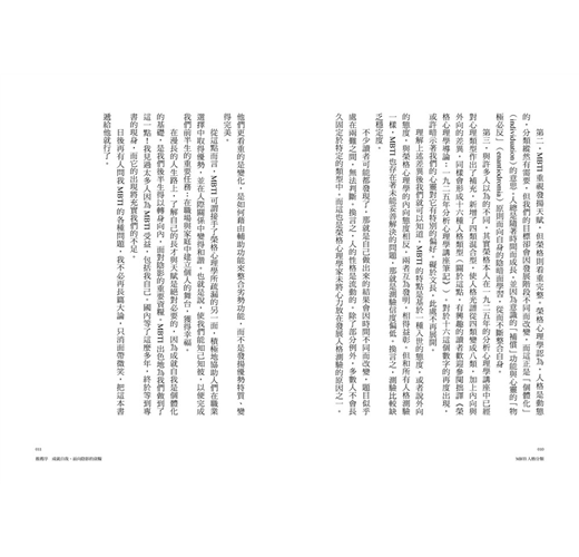 ■ 我見過太多人因為MBTI受益,包括我自己。國內等了這麼多年,終於等到這本書現身,而它的出現將充實我們的不足。鐘穎╱心理學作家、愛智者書窩版主